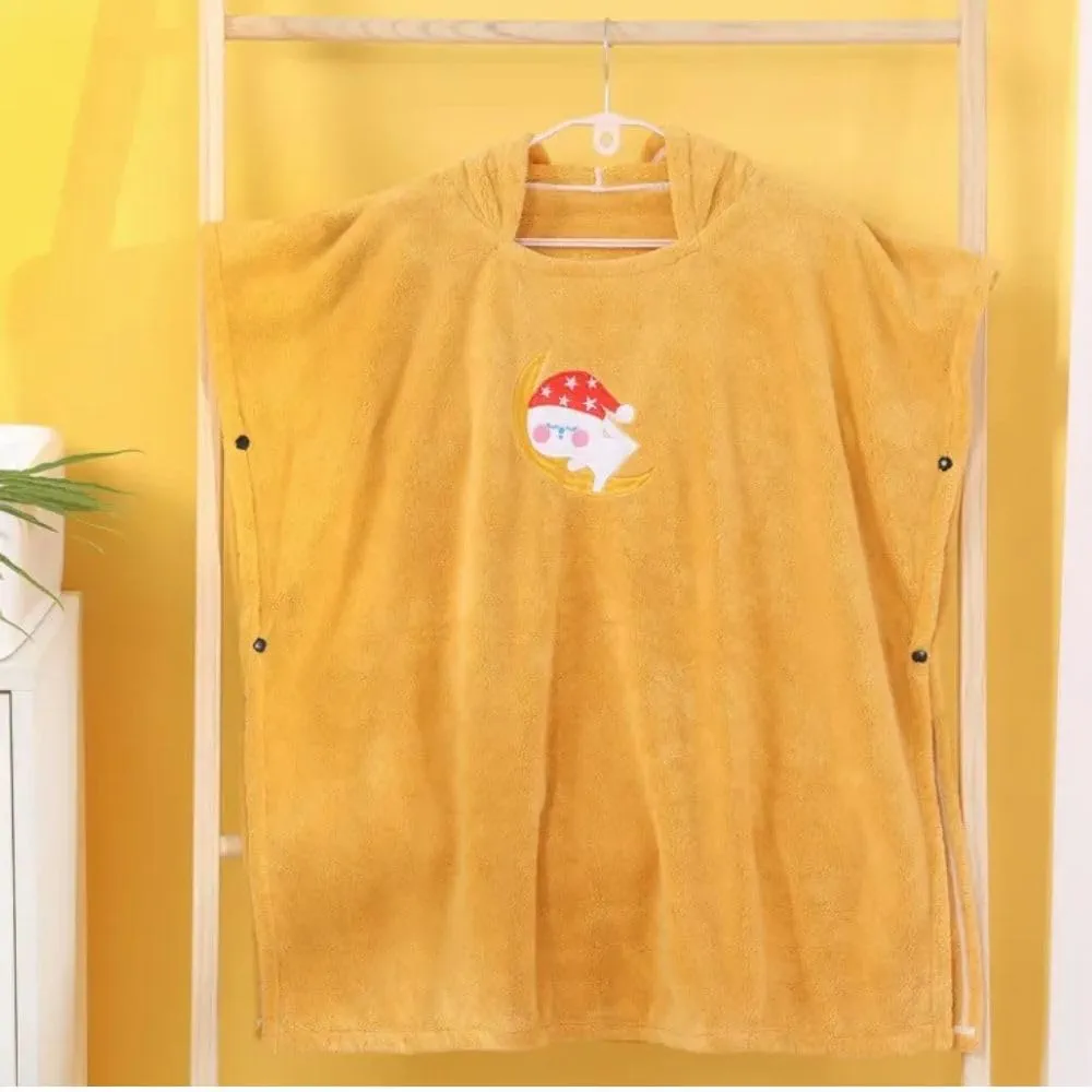 Adorable coral fleece hooded towel with rabbit design, 3D ears, and embroidered details. Ultra-soft, warm, and highly absorbent – perfect for kids after baths, swimming, or cozy lounging.