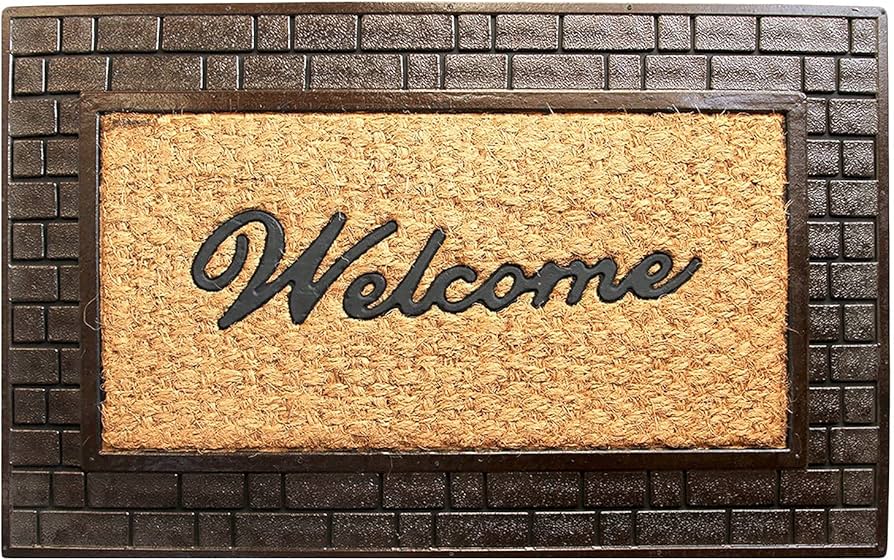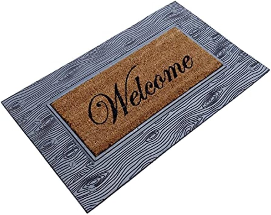 Rubber Moulded Coir Welcome Printed Doormat Long-Lasting, Heavy Duty, Large & Thick Entryway Rug for Indoor & Covered Door Entrances, Brown & Grey (75 cm x 45 cm)