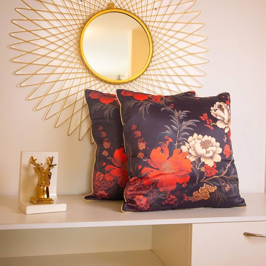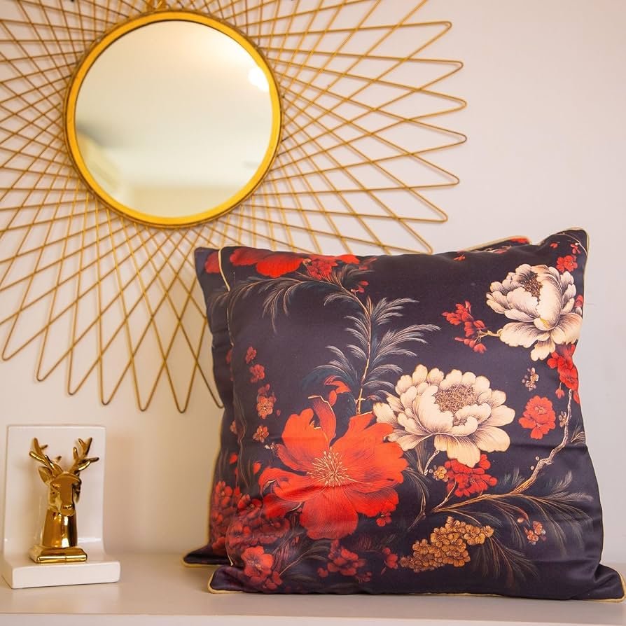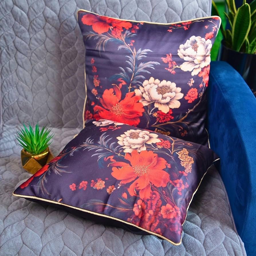 Satin Cushion Cover 16×16 Inches – Heritage Flora | Modern Luxury Home Décor