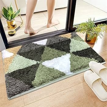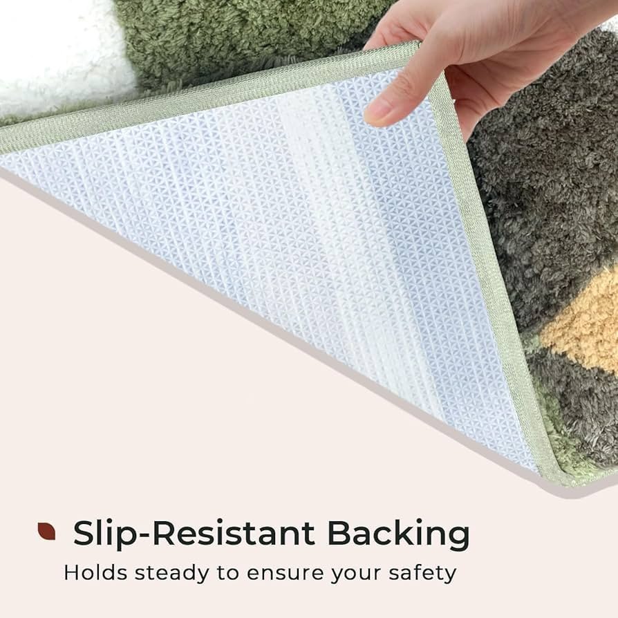 Super Soft Anti-Skid Bath Mat (40×60 cm) – Washable & Water Absorbent Floor Mat (Canada Triangle, Green)