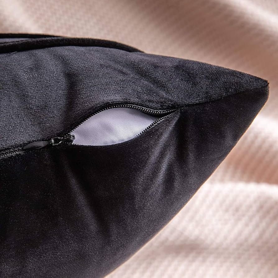 Velvet Cushion Cover Pack of 1-14_ x 14_ – 36 x 36 cm – Black – Soft Pillow Covers Cushion Case for Sofa Bedroom Livingroom Chair Car, Cushion Cover with Random Zig Zag Pattern