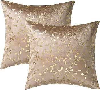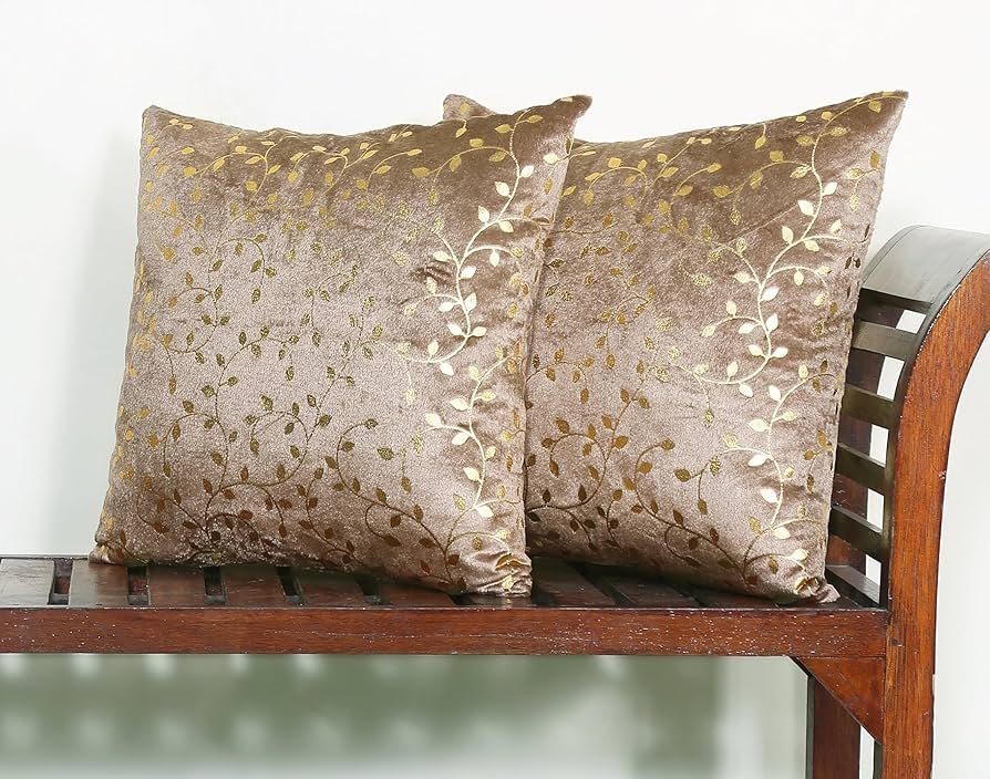 Velvet Cushion Covers, 40 x 40 cm-16 x 16 inches,250 TC, Back Zipper (2, Brown)