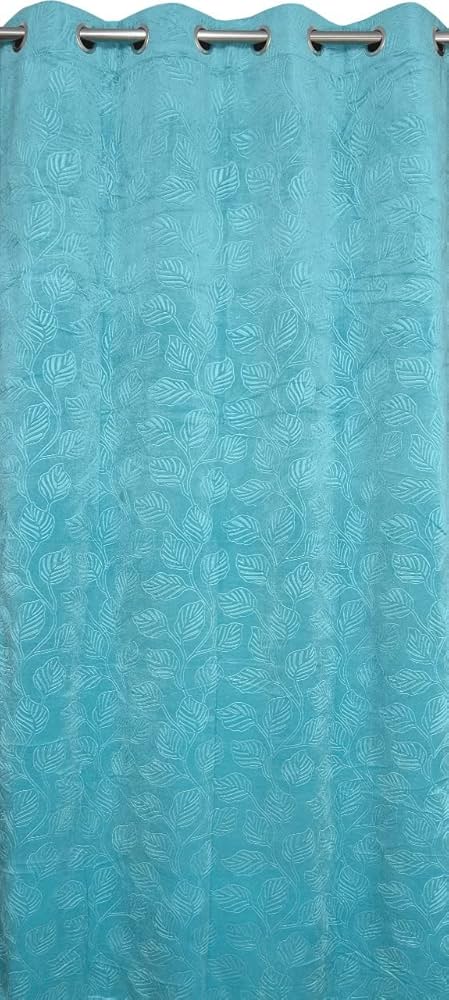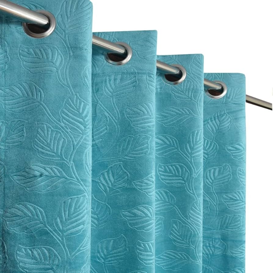 Velvet Textured Curtain Drapes for Door 8Ft Set of 2, Room Darkening Panels for Bedroom Kitchen Hall, Eyelet Curtains for Home and Office Decor, 4 x 8 Feet, Aqua