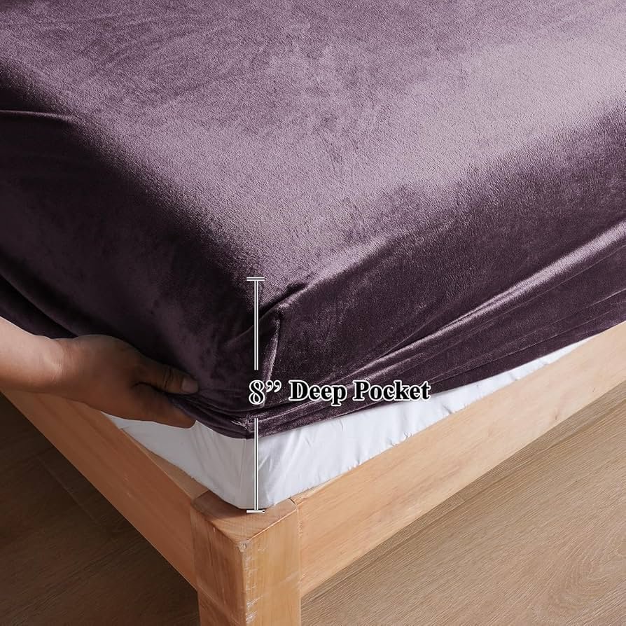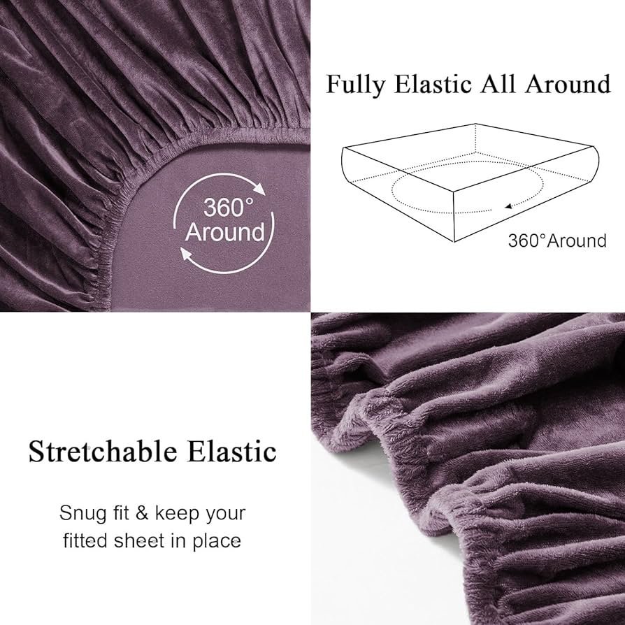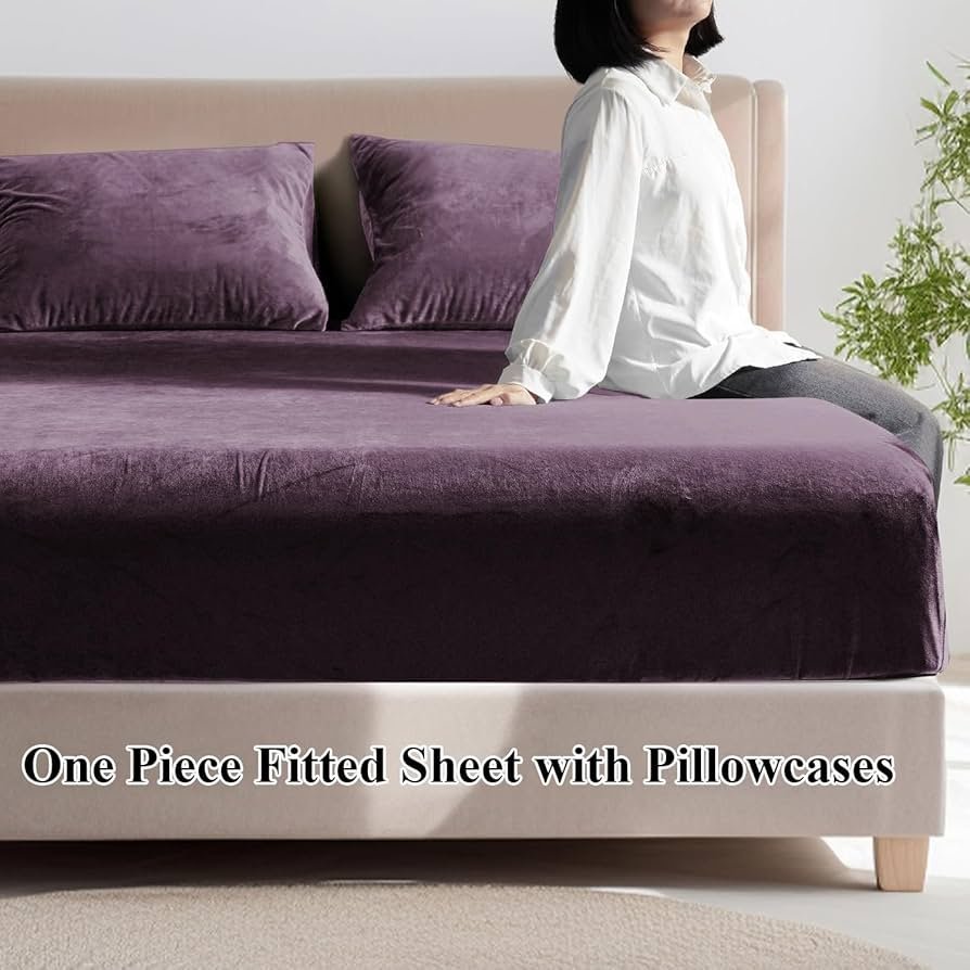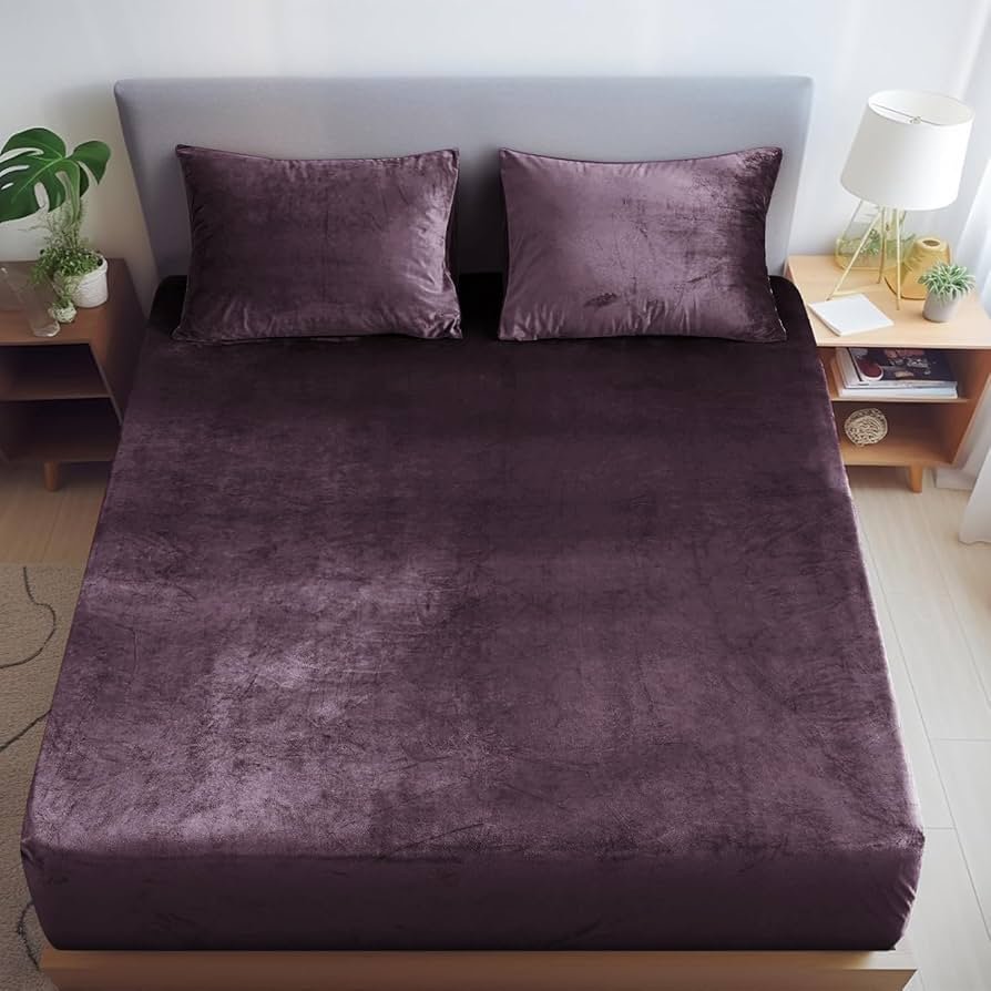 Warm Winter Elastic Fitted Bedsheet for Double Bed King Size with 2 Pillow Covers, Cozy Woolen Bedsheets for Double Bed (78X72X8 inches, Violet)